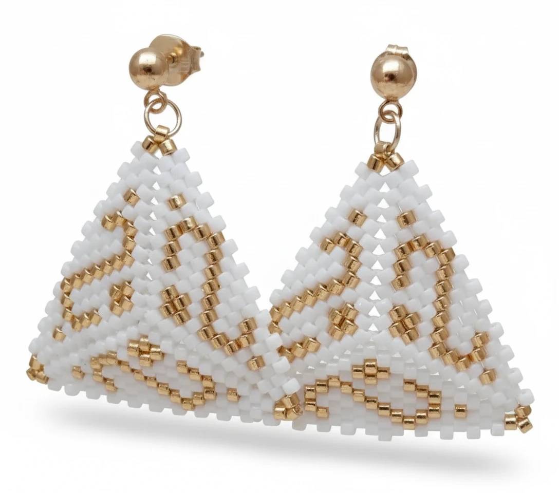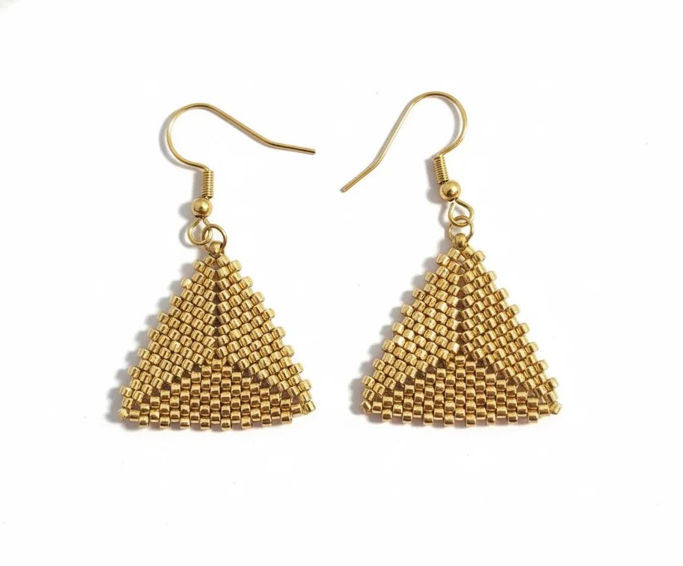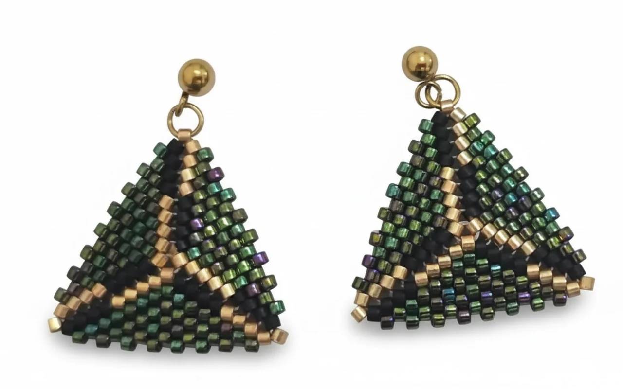 گوشواره دست بافت منجوق میوکی دلیکا طرح سه گوش