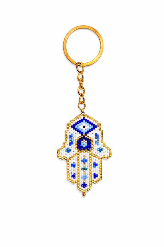 جاسوئیچی و جاکلیدی دست بافت منجوق میوکی دلیکا طرح خمسه (5 تن)