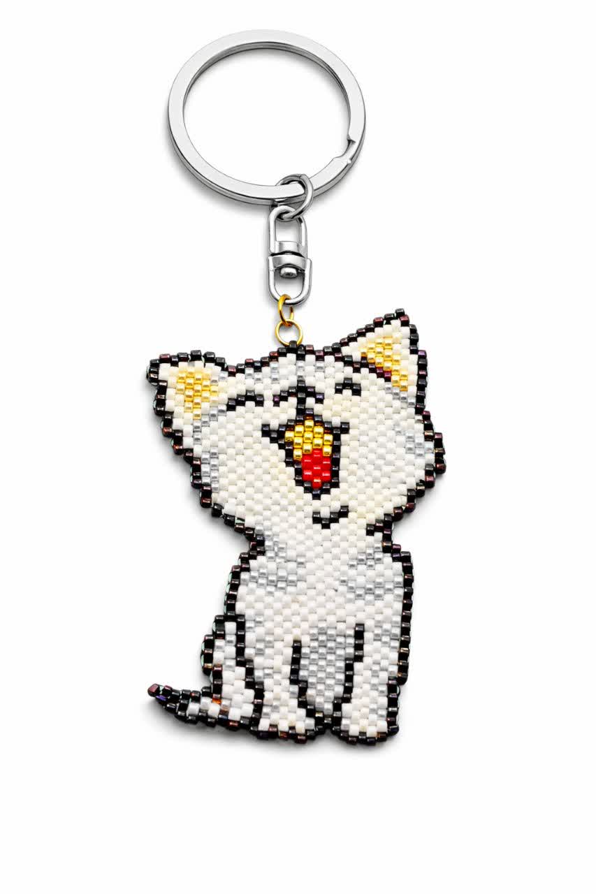 جاسوئیچی و جاکلیدی دست بافت منجوق میوکی دلیکا طرح گربه خندان