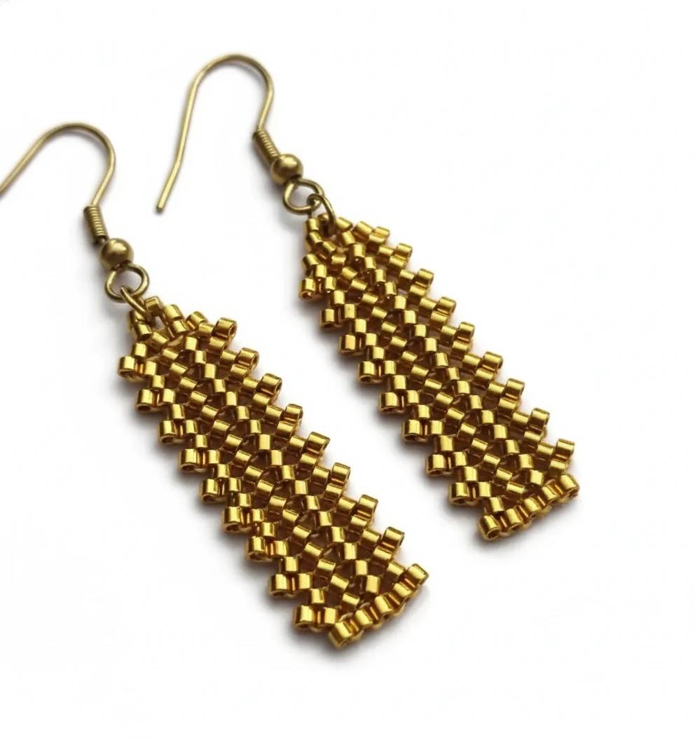 گوشواره دست بافت منجوق میوکی دلیکا کاملا مشابه طلا